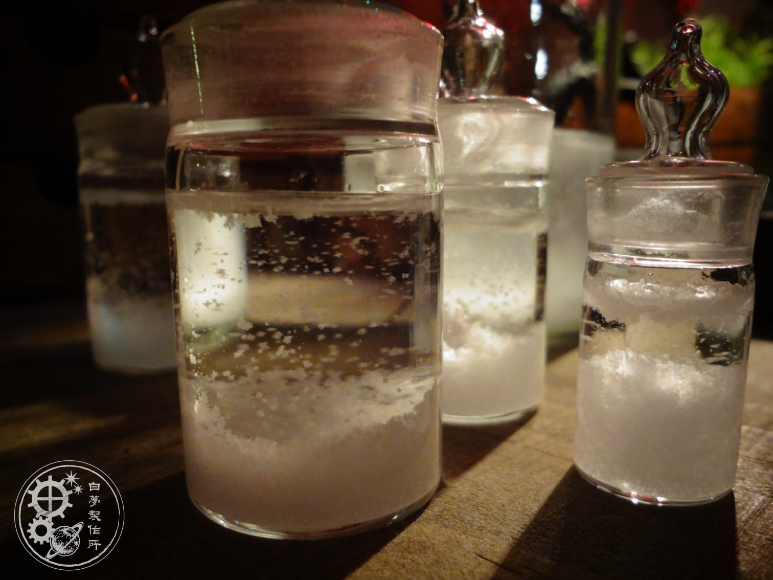 ・ストームグラス中の原料の一つである[樟脳]は、経年と共に徐々に黄変(黄色がかってくる現象)します。(※すぐに黄色くなる訳ではございません)