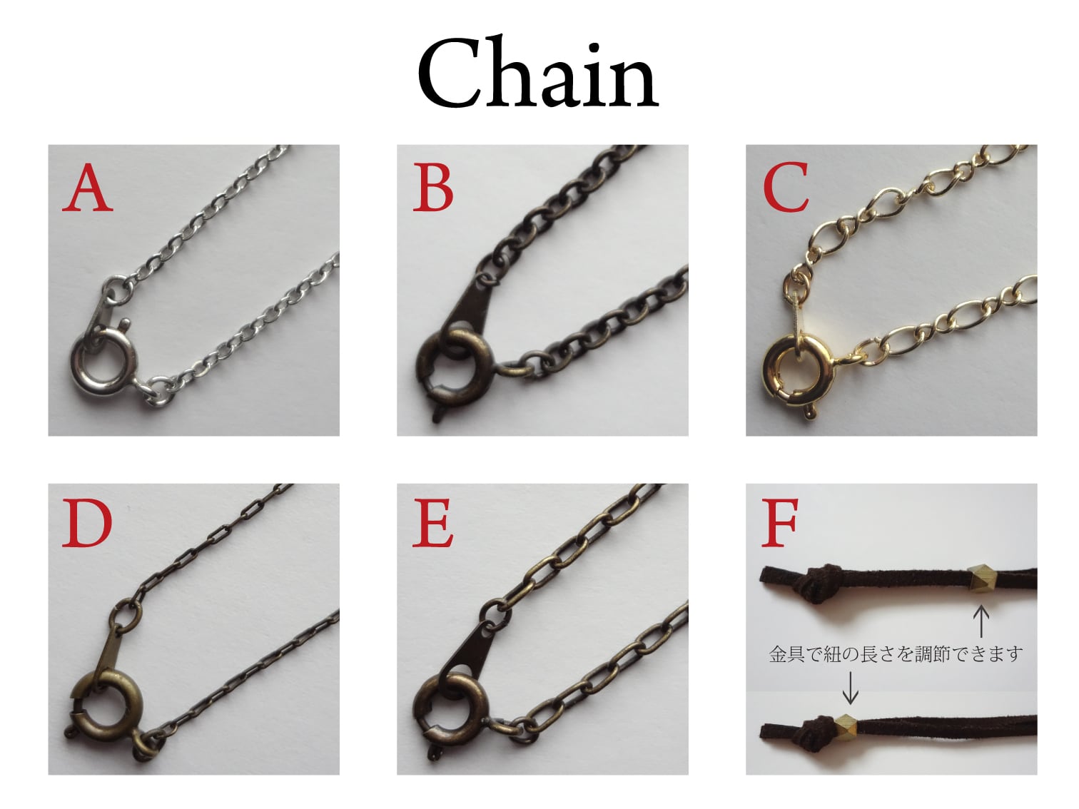◆チェーンの種類とカラー、長さを下記よりご指定下さい。