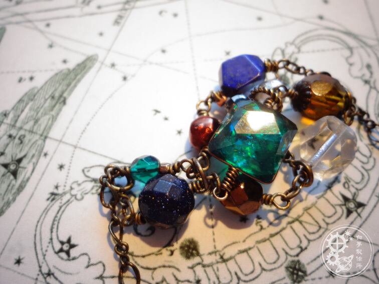 また、ブレスレットのチェーン部分(鉱石が集まっている部分の両側)を牛革紐(ダークブラウン(幅3mm))に変更する事も可能です。