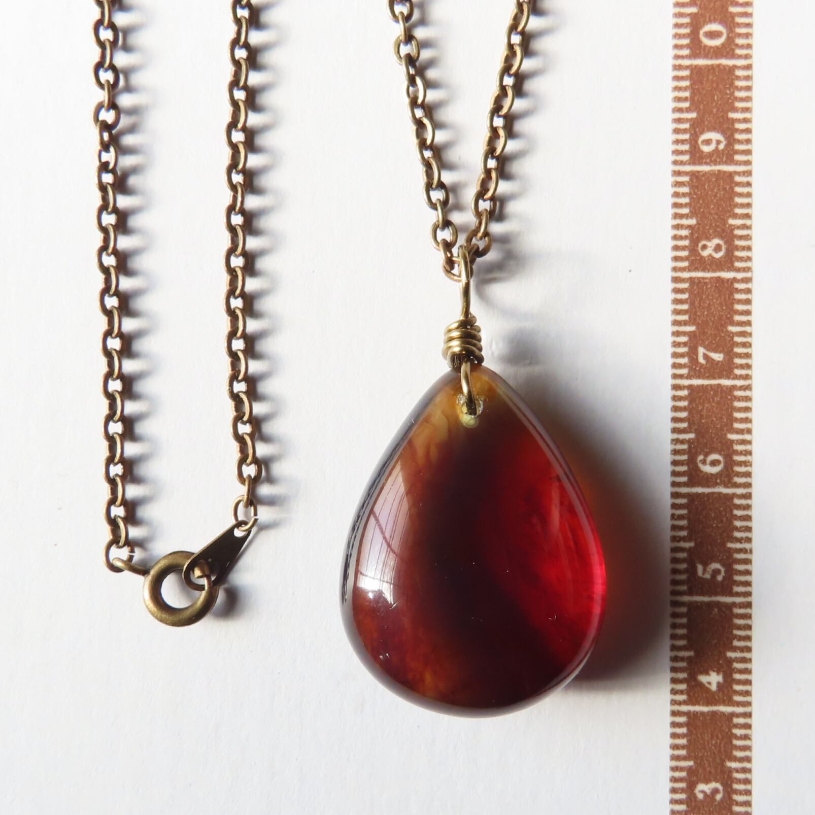 ・地色は、内部に縞模様が見える赤茶色ですが、角度によって色の見え方が変わり、強い光が当たると美しいダークレッドに見えます。