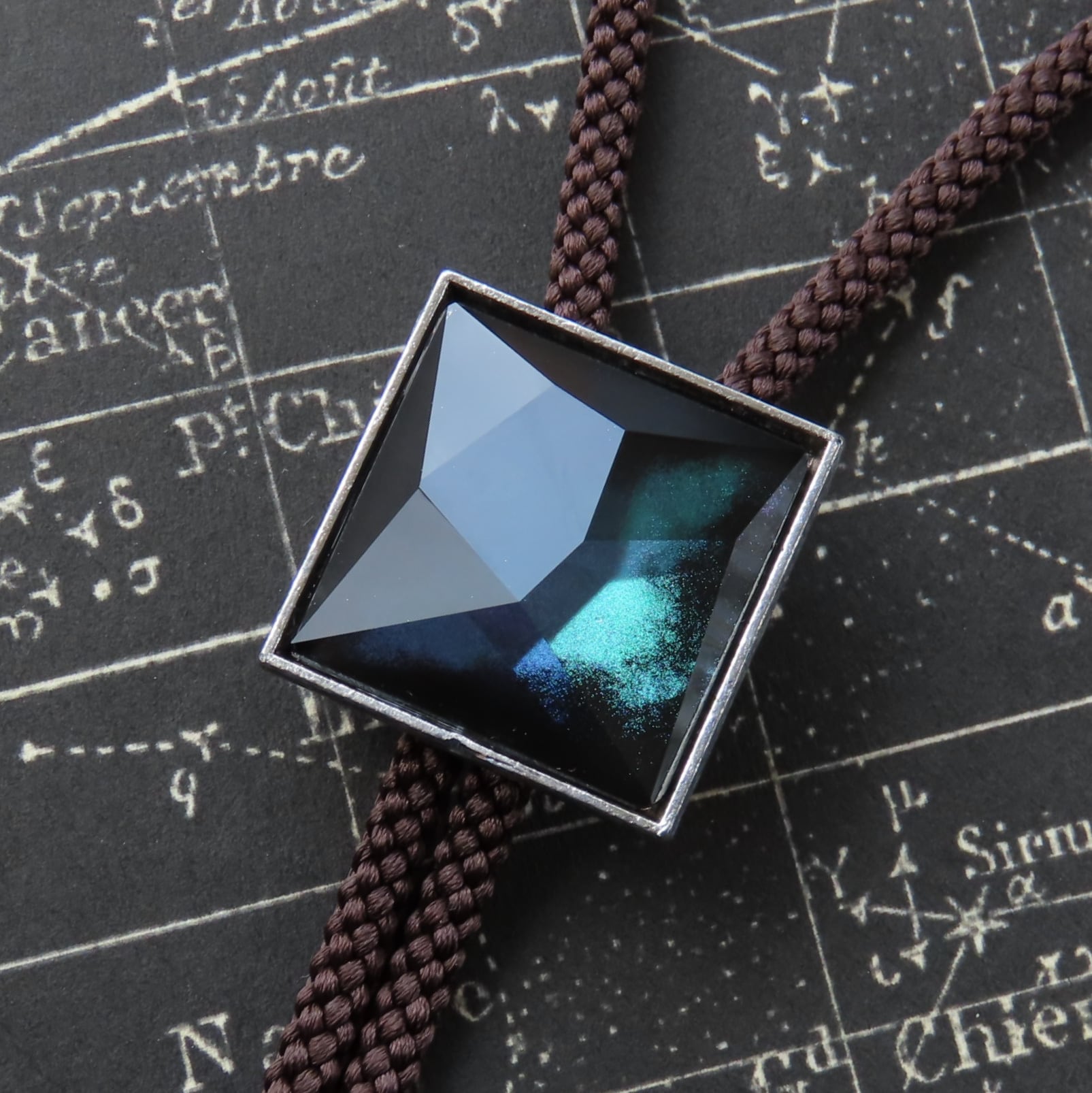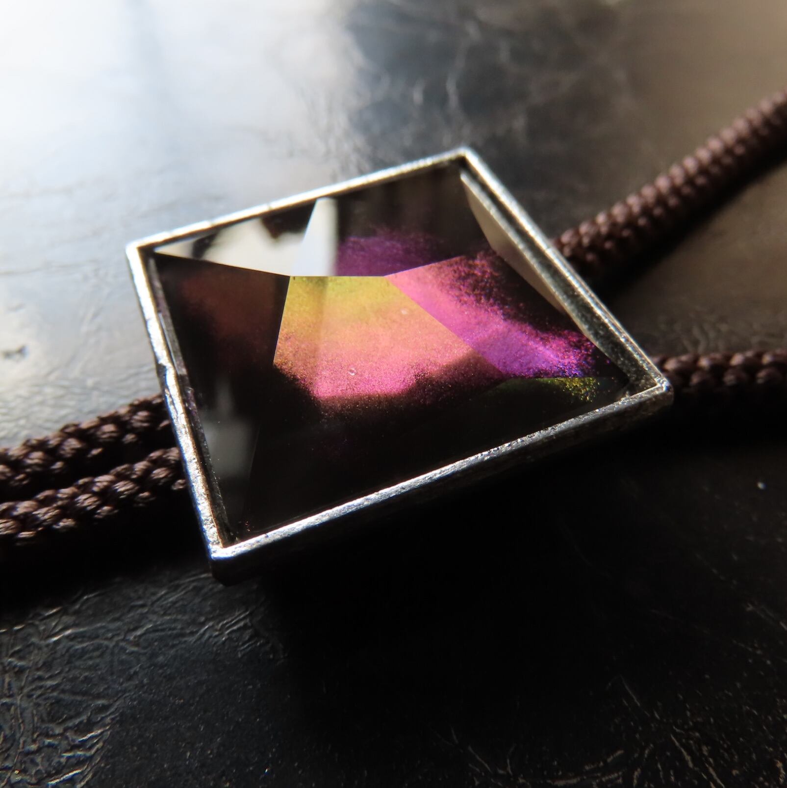 宇宙巡りの耀石スクエアループタイ【グリーンパープル】